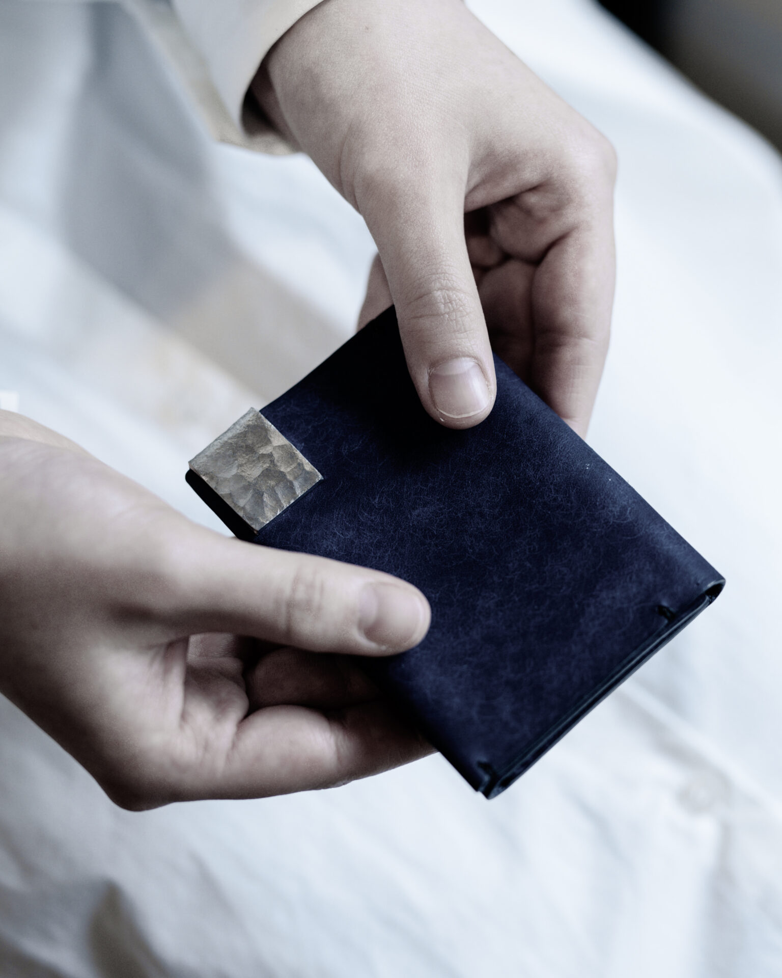 Blunoでは、イタリアンレザーに錫を組み合わせた革小物を、一点ずつ手仕事で仕立てています。